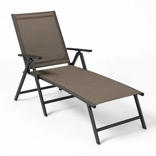 Steel folding lounge chair in brown. Dimensions: 86 cm (width) x 62 cm (depth) x 110 cm (height). Durable steel construction for reliable support and comfort.