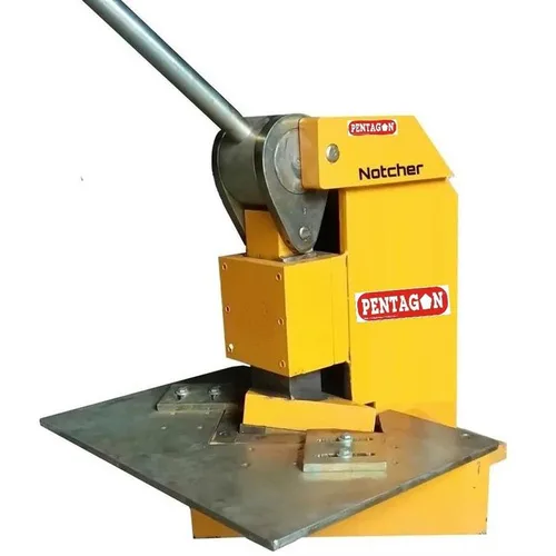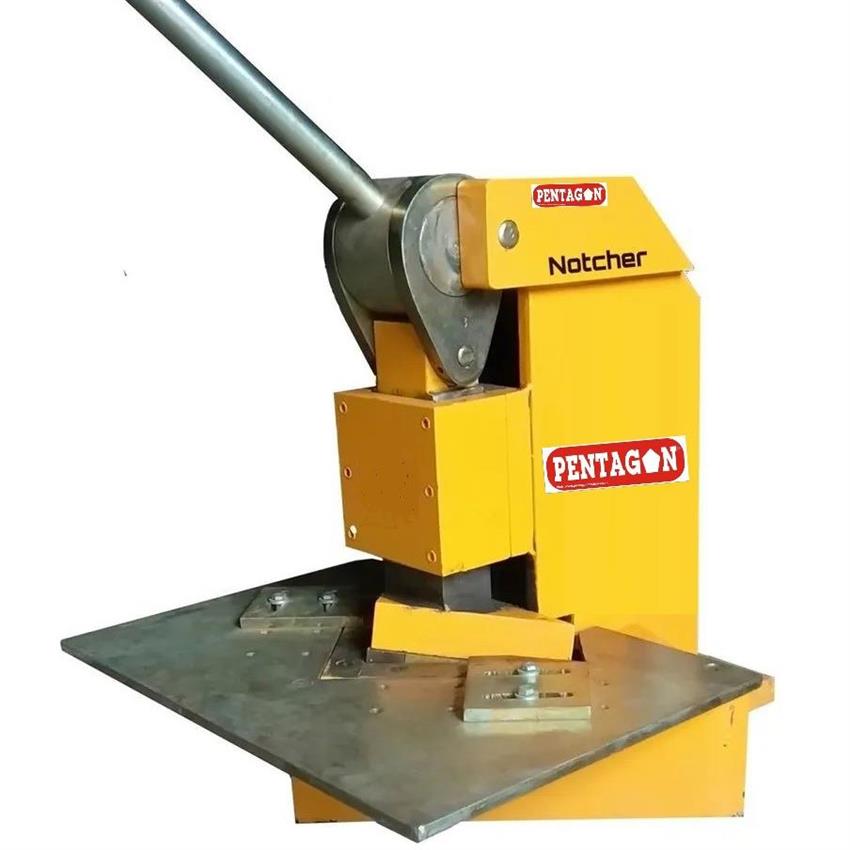 Steel hand notching machine for corner cutting in metallic sheets. Capacity 150x150x1.2 mm. Model PHNM 150. Ideal for precise metallic sheet edge modification.
