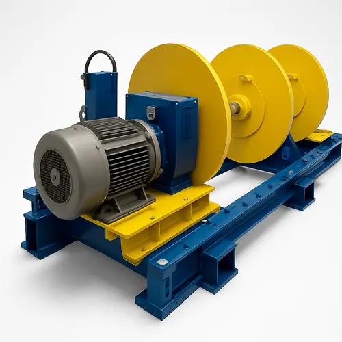 Automatic steel scrap winder slitting assembly maintaining uniform tension on each scrap strand. Operates on 440V, 50Hz single-phase power, with a maximum speed of 1500 rpm.