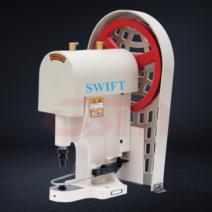 Automatic button fixing machine with 550 Watt motor, 1 Phase, 220V. CI body material for durability. Ideal for button application in manufacturing.