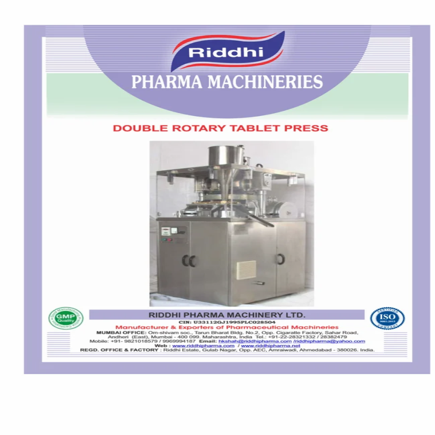 New tablet punching machine with 3 HP motor, 410V, 3-phase supply. Achieves 24,000 tablets/hr, max tablet diameter 23mm, max fill depth 17mm. Weighs 1425 Kgs.
