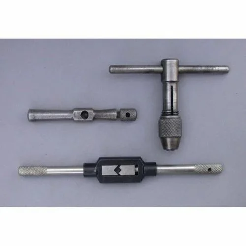 Tap wrench die handle for threading operations. Designed for secure grip and controlled torque application during manual tapping and die work. Reliable tool for precise threading.