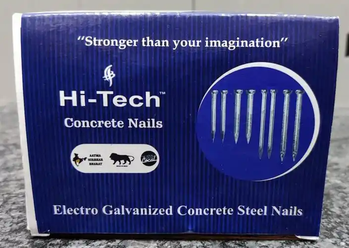 Mild steel concrete nails, tempered to HRC55 for superior strength. Available in sizes 1" to 6". Minimum order 20 Kg. Packaged in master boxes with small boxes.