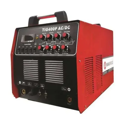 India-made AC/DC TIG welding machine with 10-400 Amp output. Features 60% duty cycle, 85% efficiency, and 420V input. Ideal for diverse welding applications.