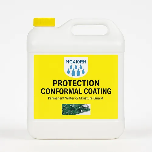 Transparent acrylic brushable conformal coating in a 5-liter can. Provides effective protection for electronic components. Brushable liquid form for easy application.