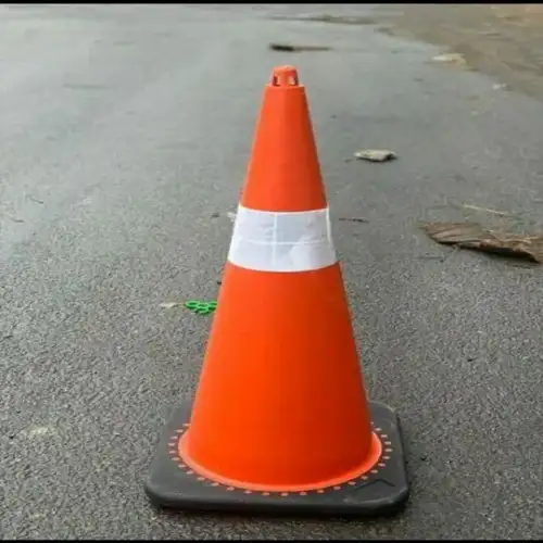 Portable PVC triangle traffic safety cone, 750mm size, in red. Designed for road safety applications. Minimum order of 5 units.
