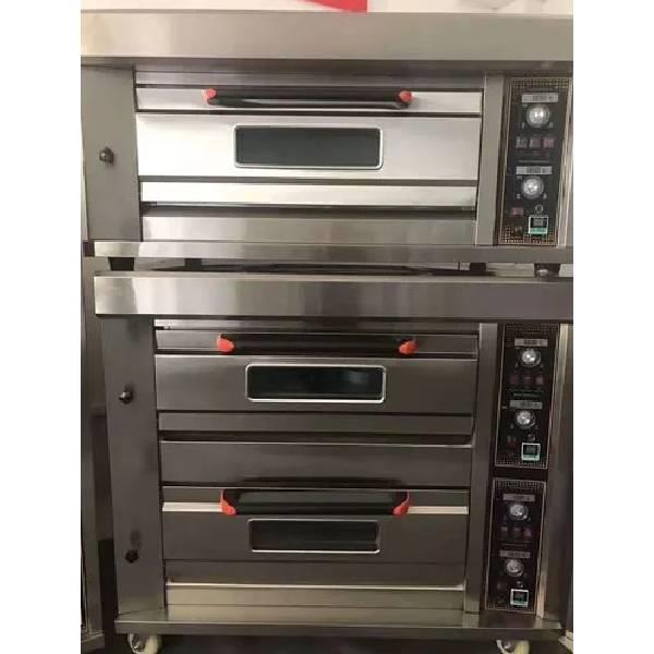 Triple deck automatic electric oven with stainless steel body. 2800W, 240V. Bakes pizza with a 200kg capacity. Suitable for commercial and bakery applications.