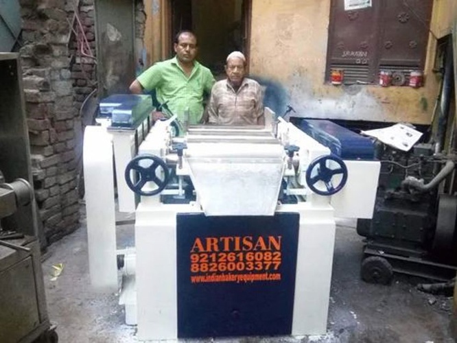 New, white triple roller mill machine featuring granite tiles and 440V operation. Made in India. Minimum order quantity of 1 piece for industrial applications.