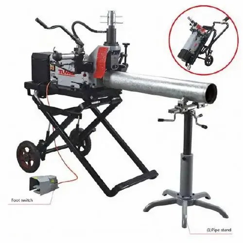 TWG-VIA roll grooving machine with 10mm max wall thickness and 36 rpm output. Available in 1-inch and 12-inch capacities. Weighs 280 kgs.