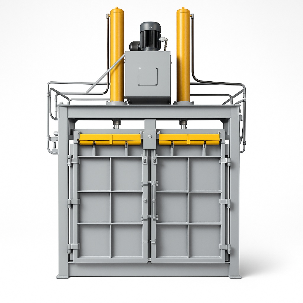 Manual hydraulic twin chamber machine for waste paper. Features 5 Ton/Day capacity, 10 HP motor, 3 Phase, 440V. Chamber size 36x24x54.