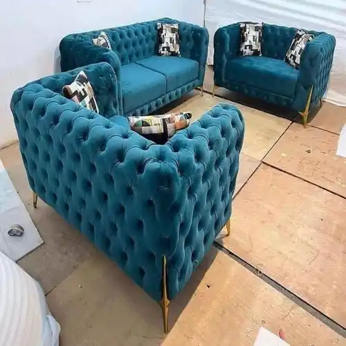 Modern U-shape living room sofa with cotton seat material. Offers seating for six, blending style and comfort for your home. Durable construction for everyday use.