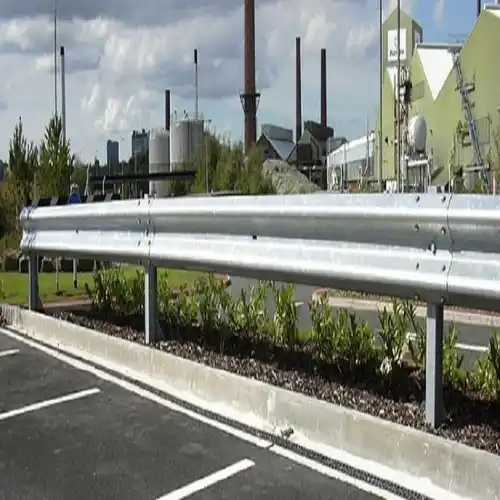 Galvanized mild steel W-beam crash barrier for exterior road safety. Immovable and ISO certified for maximum protection and durability. Custom dimensions.