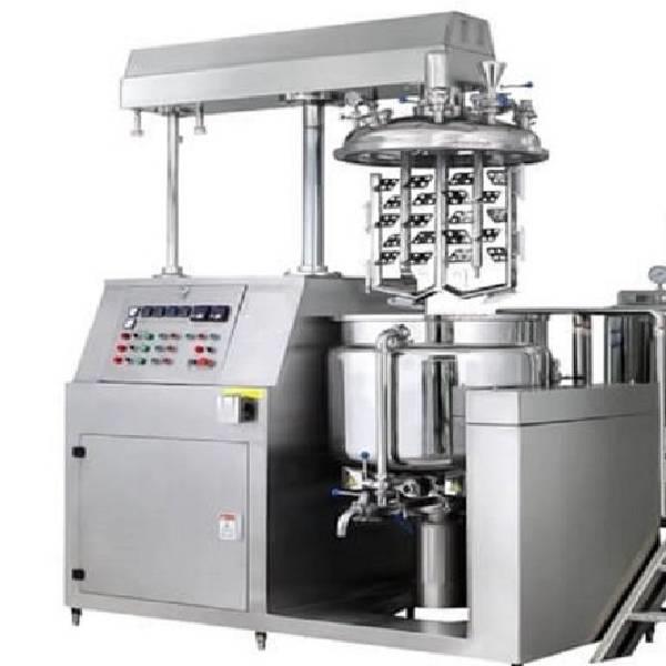 Vacuum emulsifying mixer for industrial processing. Designed to create stable emulsions under vacuum conditions. Features a robust construction for reliable performance.