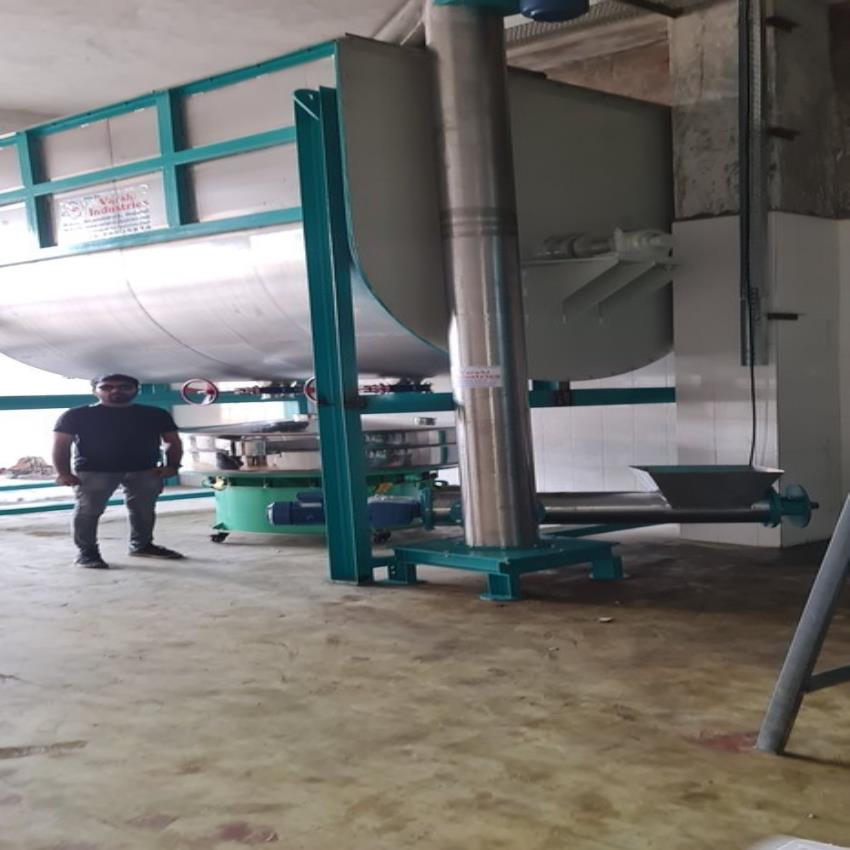 Vertical screw conveyor machine in stainless steel. 100 Kg capacity, 220 V operation. Efficiently transports bulk materials vertically.