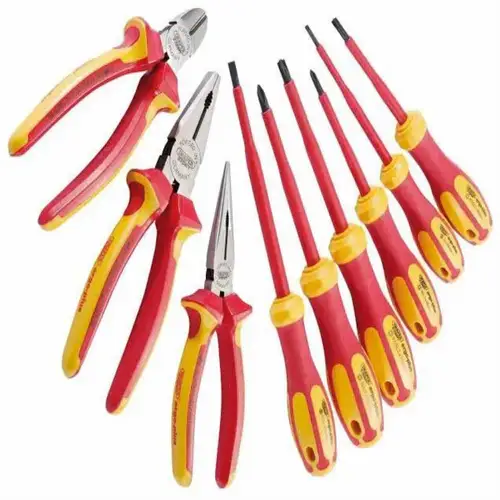 VDE insulated plier set designed for electrical work. Provides safe handling and reliable performance. Specifications not provided.