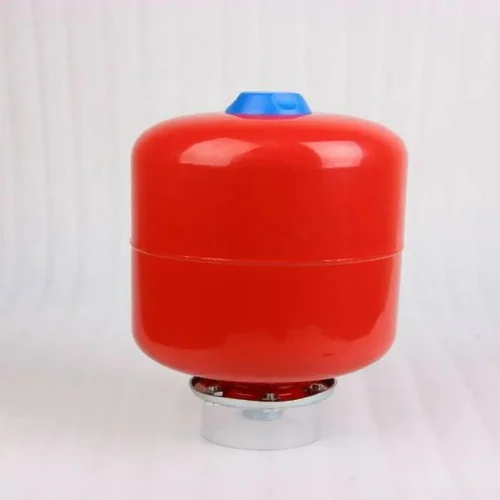 Vertical expansion tank with 0-250 L capacity. Available in red and blue. Operates at 10-16 bar pressure. Stores water. Size: 200x340 mm.