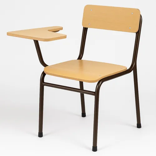 Wooden school chair with a brown wooden seat. Designed for student use, providing a durable and functional seating solution for educational environments. Ships within 7 days.