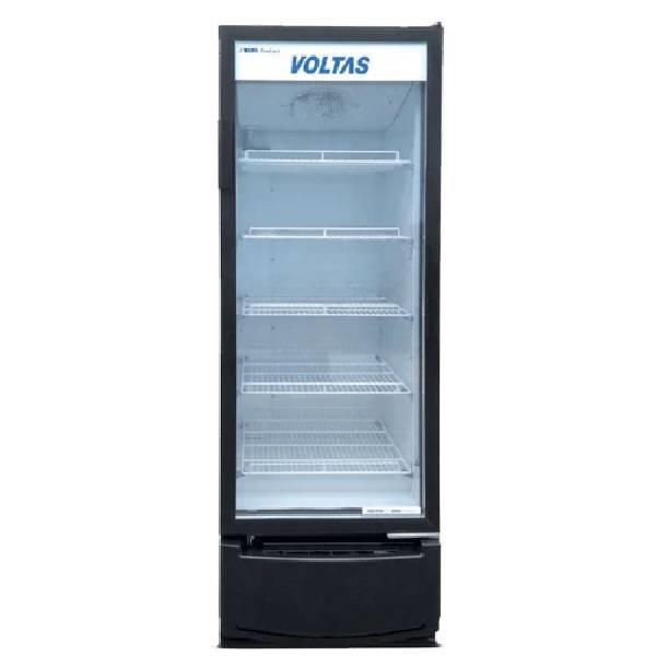Voltas chest cooler with 320 Ltr storage capacity. Features one door and includes four baskets/shelves for organized storage. Dimensions: 560 x 705x 1680.