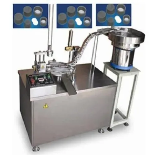 Wad Inserting Machine, Model SE- WIM - 60. Constructed with SS/MS materials. Offers an output of 1000 to 3000 units per hour for efficient wadding placement.