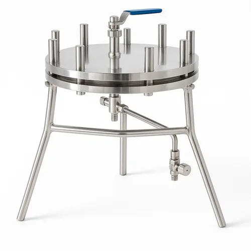 White SS 316 L OR SS 316 membrane filter holder with bubble test for chemical laboratories. Available in 142mm or 293mm sizes.