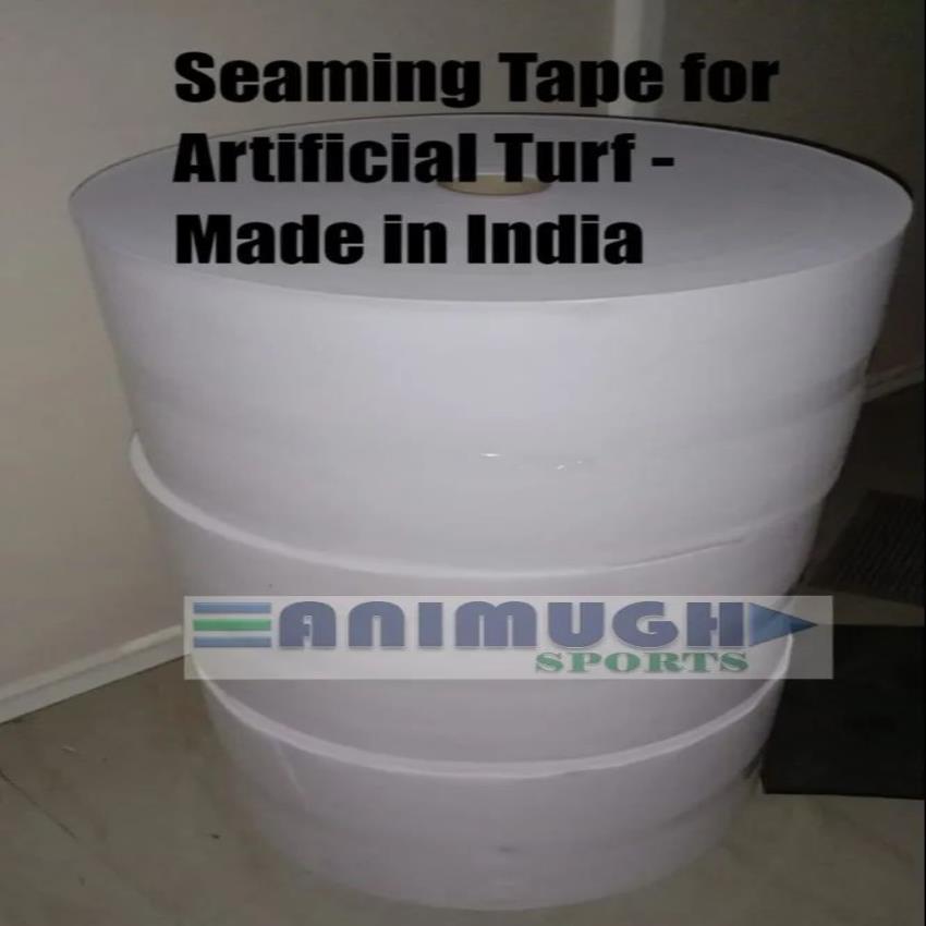Non-adhesive white football turf seaming tape. Each roll is 50m long with a width exceeding 100mm. Minimum order quantity is 200 rolls.