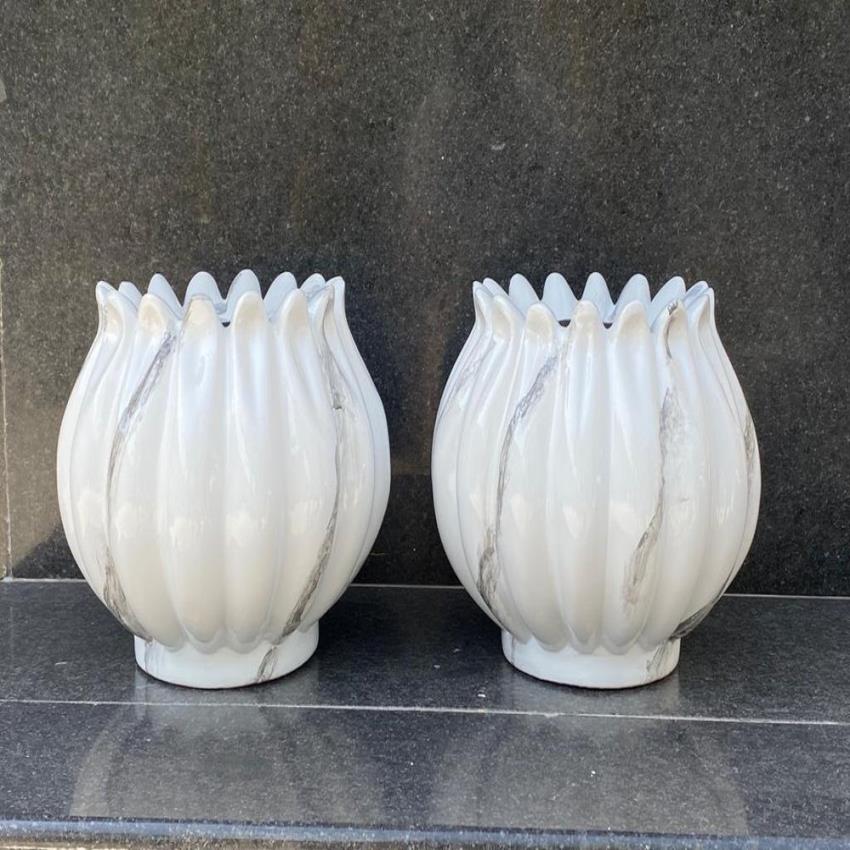 White FRP fiber pot for garden and home use. Diameter 350 MM, Height 300 MM. Minimum order quantity of 5. Made in India.