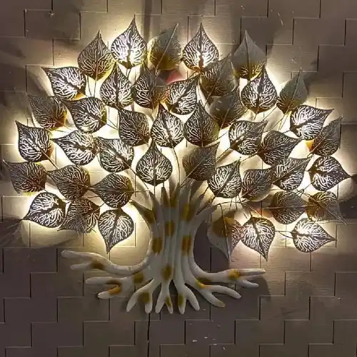 Golden metal and ceramic artwork for decoration. Size: 4x5. Adds a touch of elegance to any space. Purpose: Decoration.