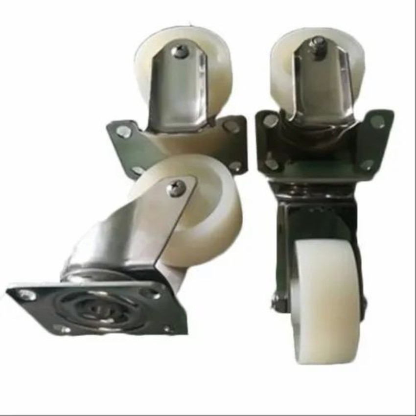 White nylon castor wheel, 30-40mm size. Diameter 10-12mm. Loading capacity 70-80 Kg. Round shape, suitable for various applications and easy movement.