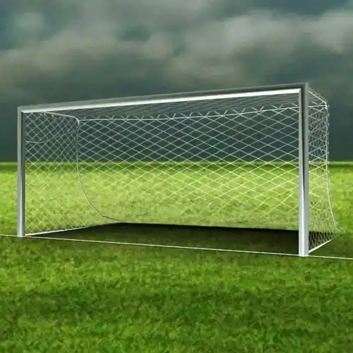 White, single-layer nylon football goal net. Hand-stitched for durability, rectangular shape, and water-resistant. Ideal for playing football. Available in stock.