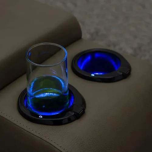 White plastic cooling cup holder for sofa. Designed for home use. Packaged in a carton box. Provides convenient beverage placement.