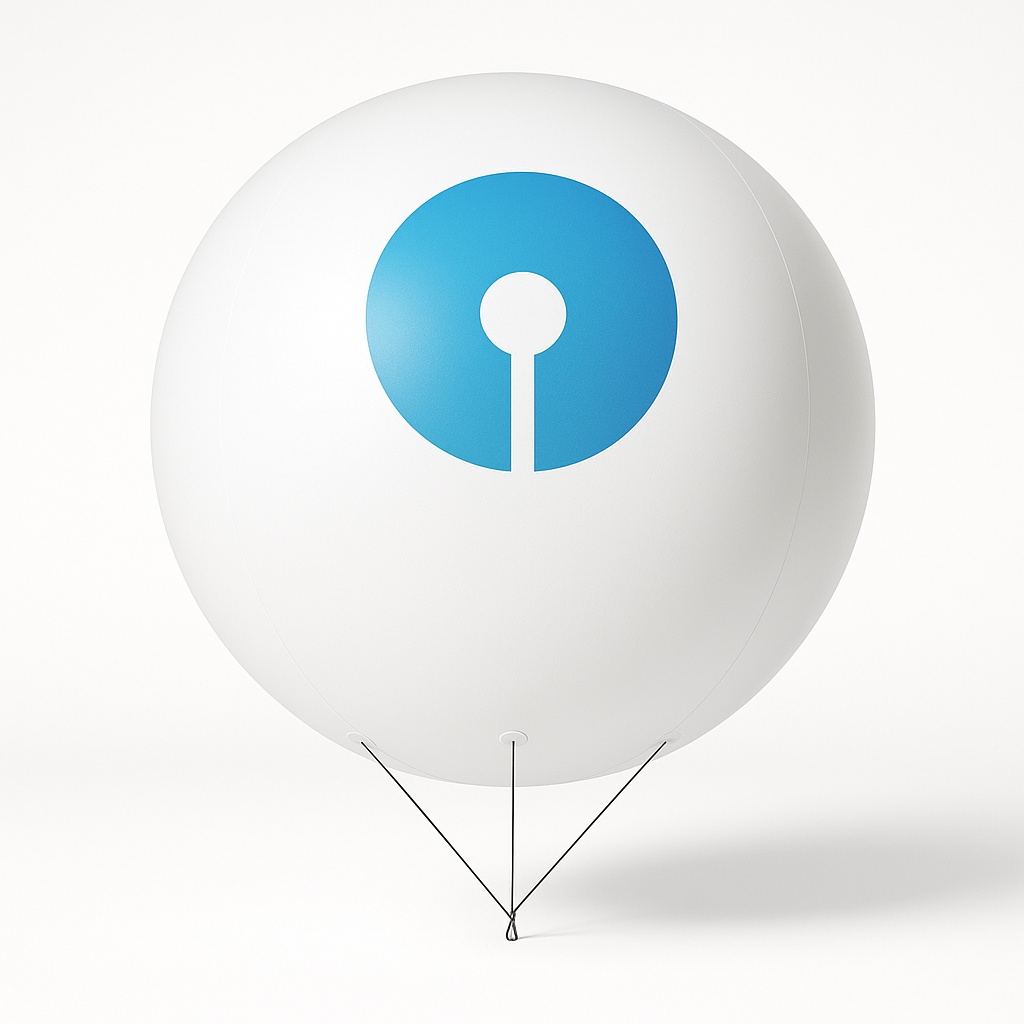 White PVC inflatable advertising sphere, 10ft round. Features printed pattern. Packaged in a carton box. Suitable for advertising applications.