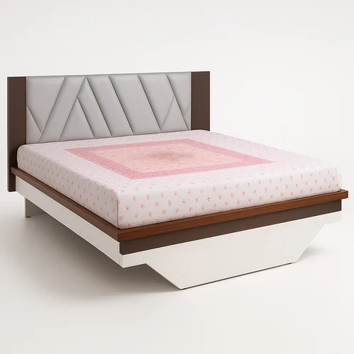 White Teak Wood headboard for double beds at home, with hydraulic storage. Laminated finish, folded design. Weighs 300kg, 7x6 width. Made in India.