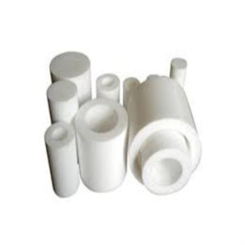 White Teflon round bush, suitable for high-temperature applications (200-250°C). Offers excellent chemical resistance and low friction. Made in India.