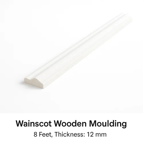 White wooden wainscot moulding, 8 feet length, 12 mm thickness. Rectangular decorative wall panel. Minimum order quantity: 5 pieces.