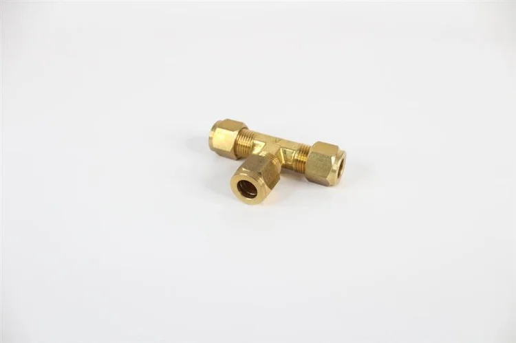 Brass ferrule T-connector, 3/8 inch diameter, for misting kits. Model OD-C308, weighing 61g. Minimum order 6 pieces.