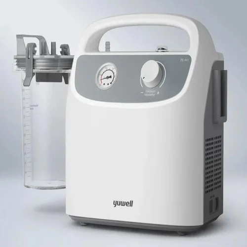Automatic portable phlegm suction machine (7E-H1) for medical use. Features plastic construction with a capacity of 22 LPM.
