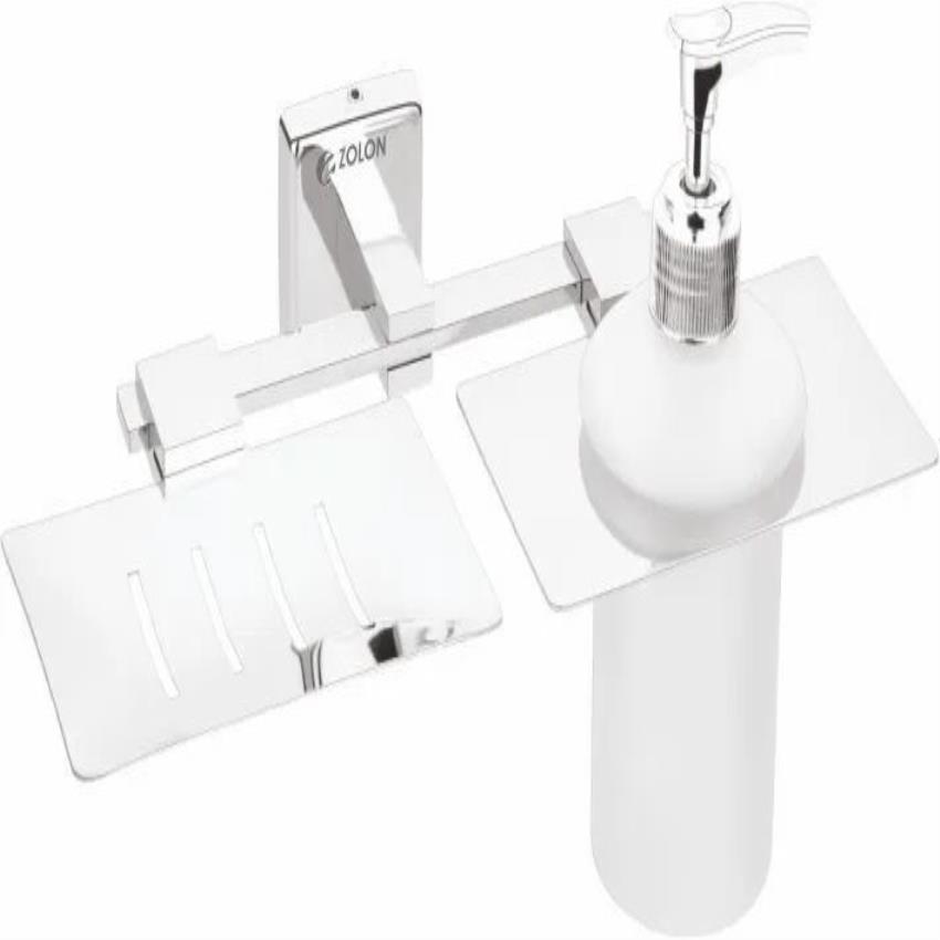 Silver stainless steel and ABS manual soap dispenser, model ZB-410. 500 ml capacity, surface/wall mount. Made in India.